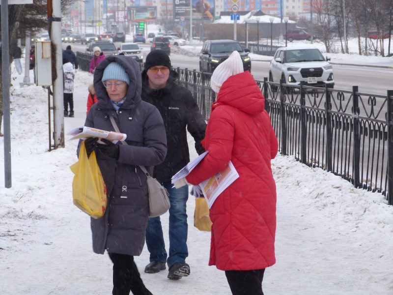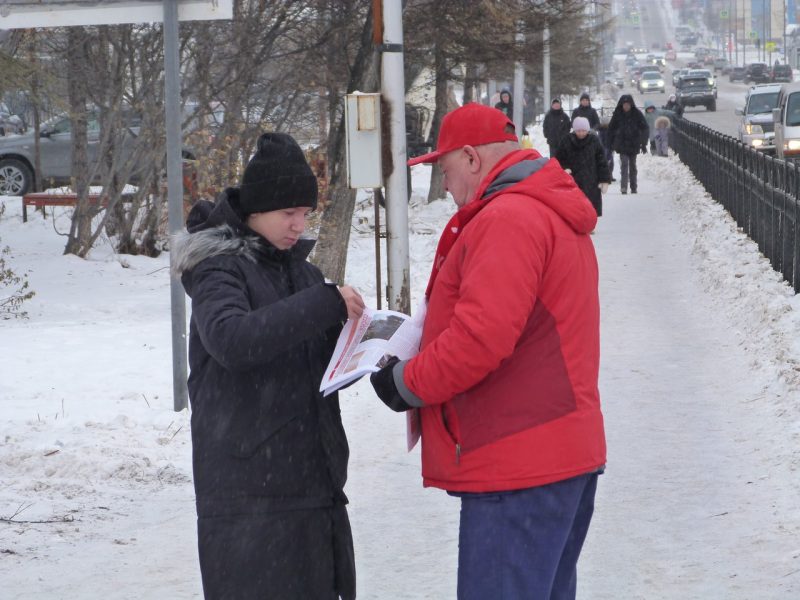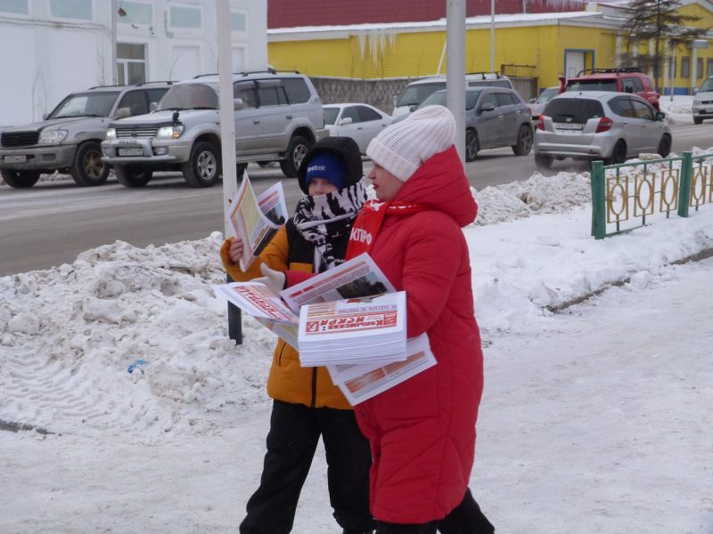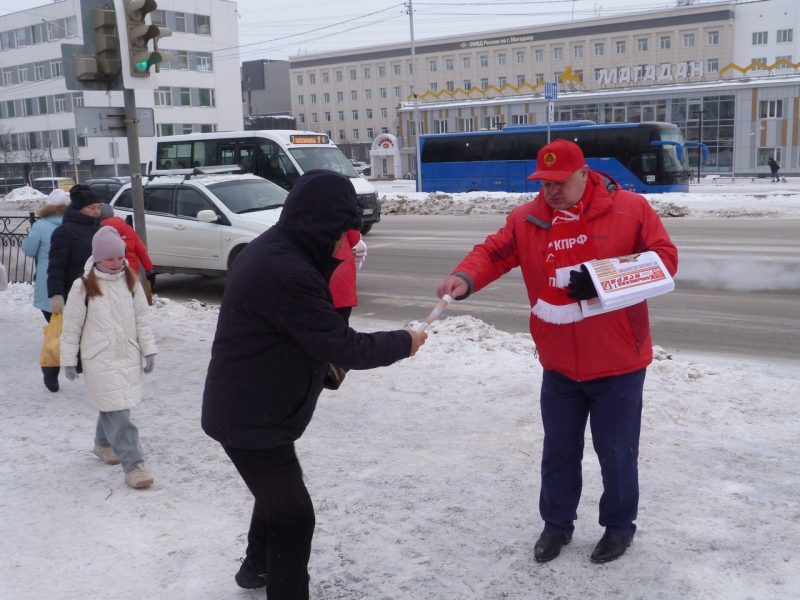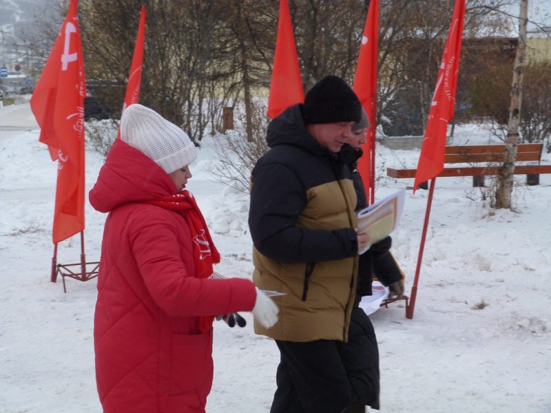 22 ноября 2025 года, Магаданские коммунисты провели очередную акцию — пикет » Красные в городе». Тема акции: поддержка Программы Народного Референдума. Акция прошла с раздачей партийного печатного материала газеты ‘Колымская искра», листовок с информацией о Программе Народного Референдума. Акция вызвала интерес у жителей города, которые с большим удовольствием берут партийную печать, листовки,  поддерживают вопросы Народного Референдума.